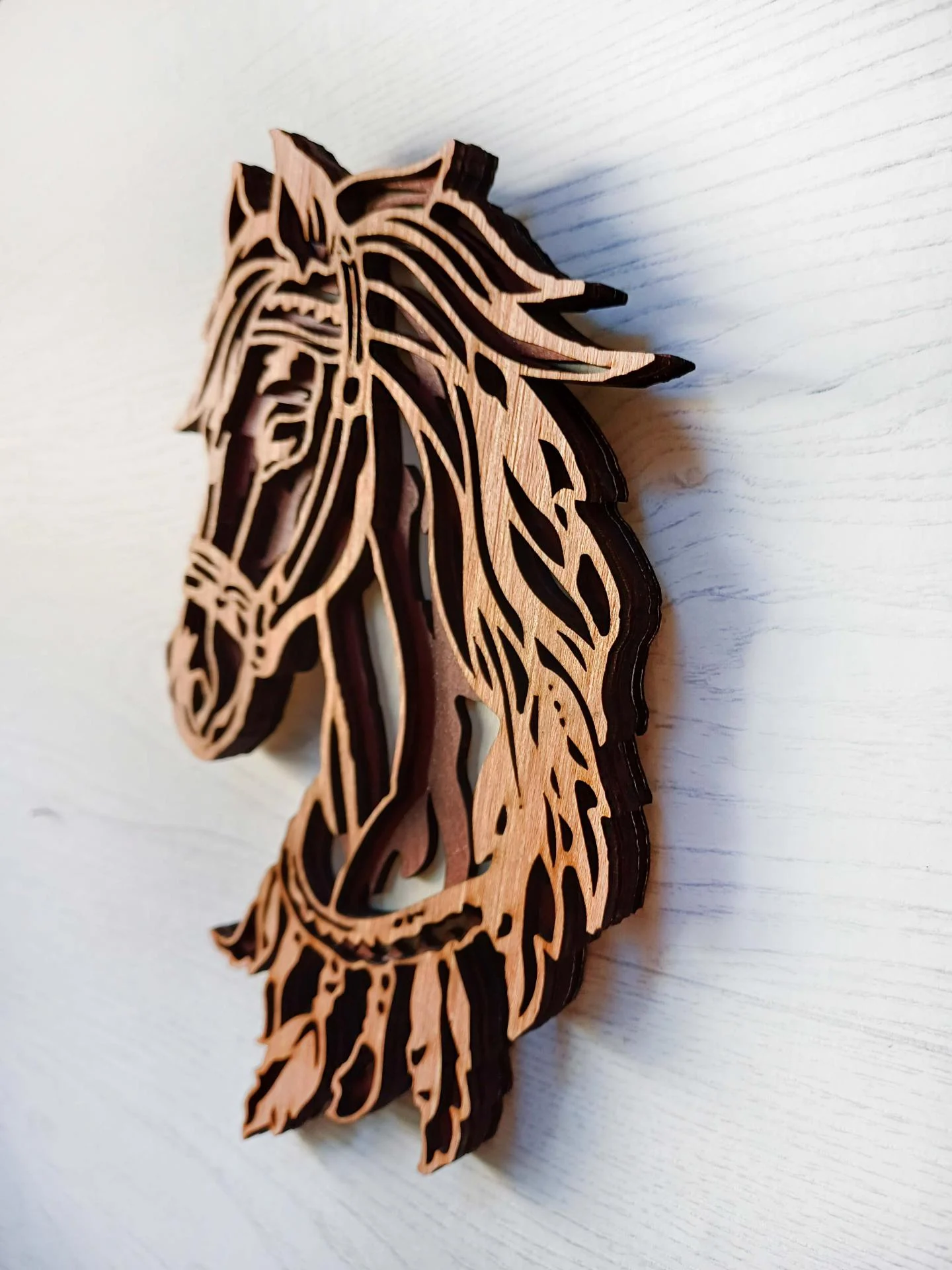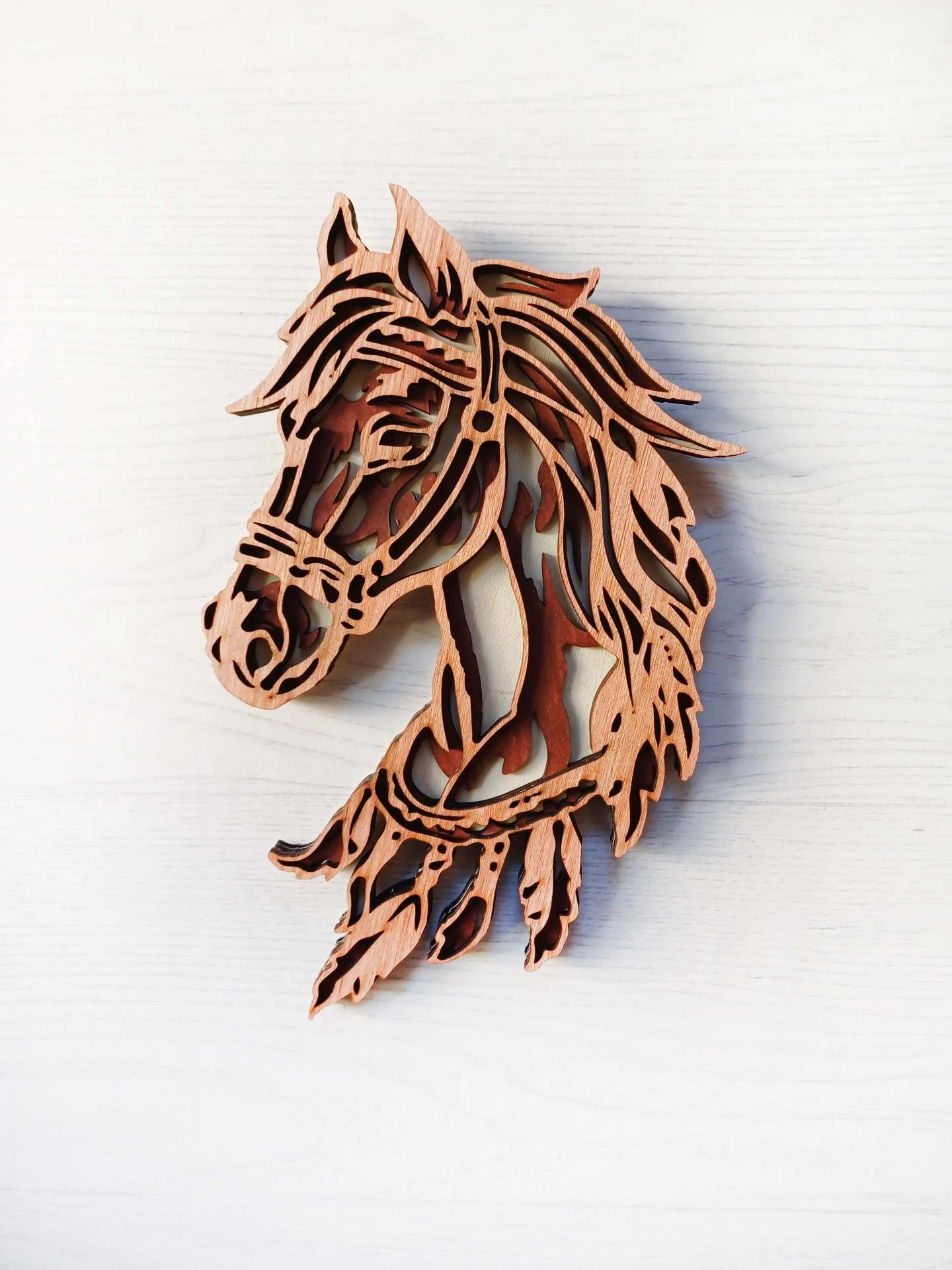 Tête de cheval en bois 3D, façon mandala